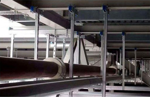 抗震支架是限制附属机电工程设施产生位移,控制设施振动,并将荷载传递至承载结构.上的各类组件或装置。抗震支架在地震中应对建筑机电工程设施给予可靠的保护,承受来自任意水平方向的地震作用;抗震支架应根据其承受的荷载进行验算;组成抗震支架的所有构件应该采用成品构件,连接紧固件的构件应便于安装;保温管道的抗震支架限位应按照管道保温后的尺寸设计,且不应限制管道热胀冷缩产生的位移。